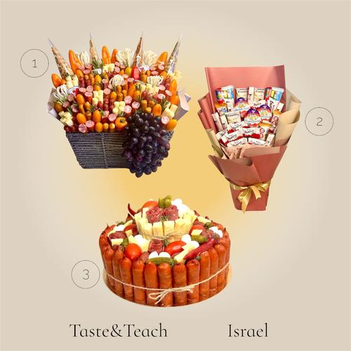Обычный букет вянет, а мой можно съесть. 😋Съедобные букеты из колбасок, сыров, фруктов, сладостей. Для любимого мужчины, коллеги, друга, мамы, детский и просто без повода. Доставка по северу Израиля. Букеты от 150 шек, мужские от 240 шек, алкоголь в букете и доставка оплачиваются отдельно.